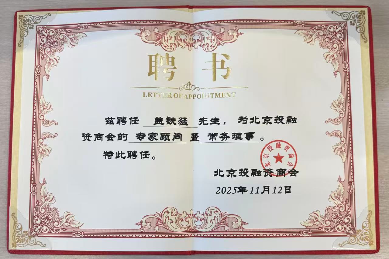 2025年11月12日,乾成律所创始合伙人盖铁猛律师正式获聘为北京投融资商会专家顾问暨常务理事。这一聘任不仅是行业对盖铁猛律师专业能力与行业影响力的高度认可,也为乾成在投融资服务领域的资源链接与专业赋能注入了新动力。